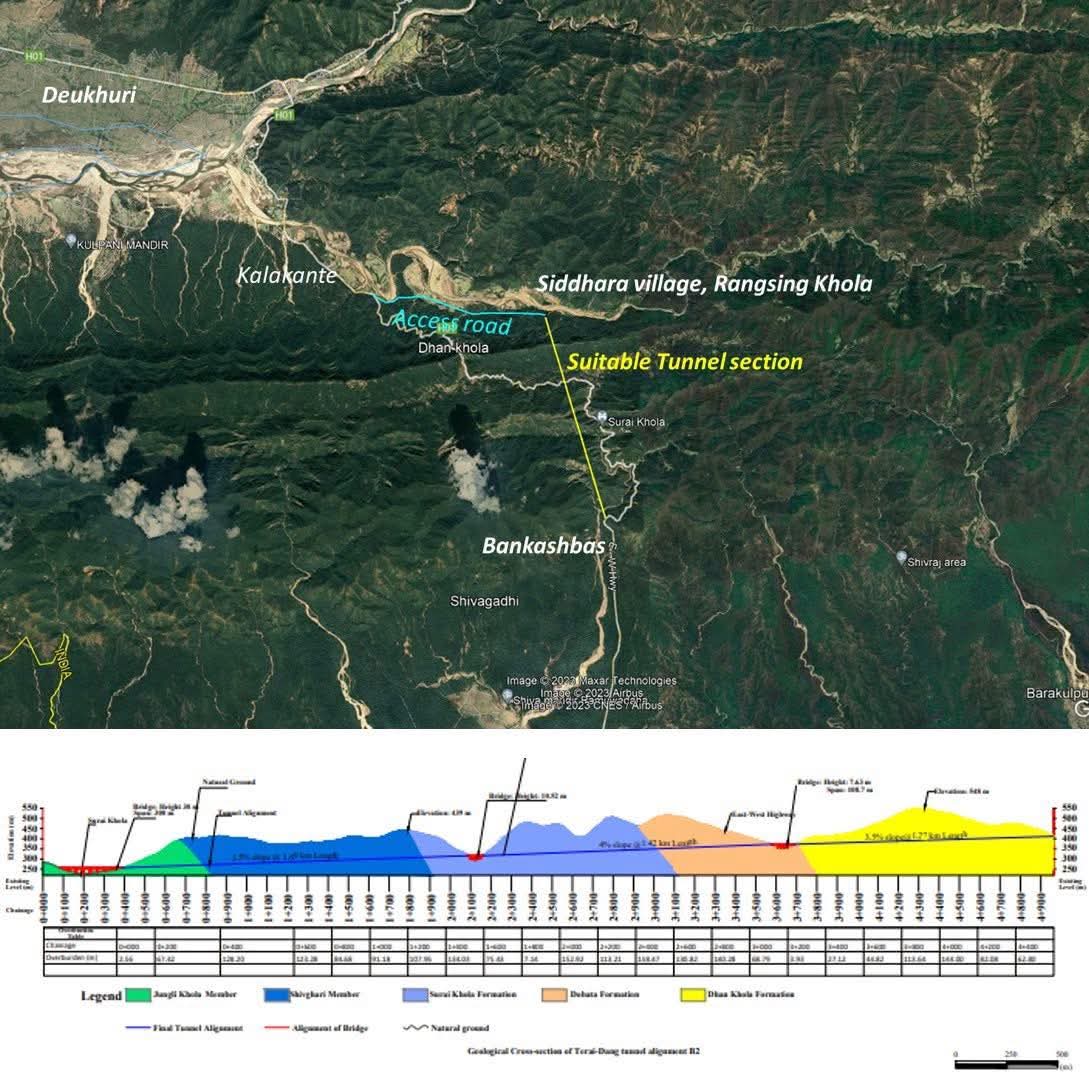 काठमाडौ। नेपाल सरकारले चुरे (शिवालिक) पहाडको नाजुक भू–भागमा पूर्व–पश्चिम राजमार्गको बनकासवास–सुराहीखोला–धानखोला–कालाकाँटे खण्ड चौडा गर्ने योजना अघि बढाएको छ। तर दाउन्ने पहाड काट्दाको अनुभवले स्पष्ट पारेको छ– चुरेजस्तो कमजोर भू–बनोटमा परम्परागत तरिकाले सडक विस्तार गर्दा पहिरो, लगातार अवरोध र दीर्घकालीन ठूलो क्षति निम्तिन्छ। बारम्बारको मर्मत र विपद् व्यवस्थापनमा देशले अर्बौँ रुपैयाँ गुमाइरहेको छ। त्यसैले दाङ देउखुरीको भालुवाङसम्म पुग्ने यो खण्डमा पहाड काट्ने होइन, करिब ४.१ किमी लामो दुई लेनको सुरुङ निर्माण गर्नु सुरक्षित, दिगो र अविरल यातायातको एकमात्र व्यावहारिक विकल्प हो।