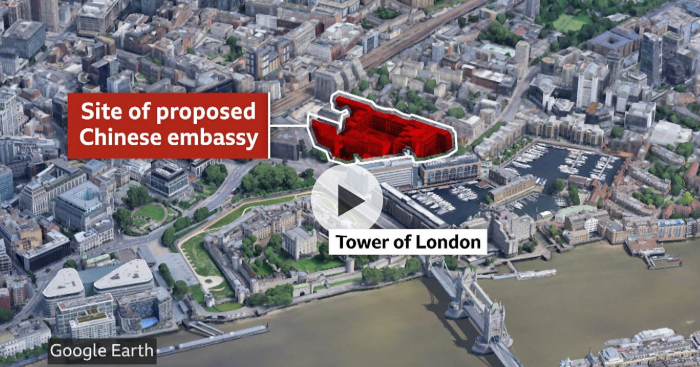 बेलायत सरकारले चीनको नयाँ ठूलो राजदूतावासको निर्माणको योजना स्वीकृति दिएको छ। यो राजदूतावास लन्डनको सेन्ट्रल क्षेत्रमा, रोयल मिन्ट कोर्टमा निर्माण हुने छ। आलोचकहरूले यसले जासूसीको आधार बन्न सक्ने र राष्ट्रिय सुरक्षा जोखिम सिर्जना गर्न सक्ने चेतावनी दिएका थिए। यद्यपि सुरक्षा मन्त्री ड्यान जरभिसले राष्ट्रिय सुरक्षा निकायहरू यस निर्णय प्रक्रियामा “अत्यन्तै महत्वपूर्ण” भूमिका निभाएको र उनी आफू “जोखिमहरू उपयुक्त तरिकाले व्यवस्थापन भइरहेका छन्” भनी सन्तुष्ट भएको बताएका छन्।
