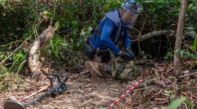 थाइल्याण्डले अब कम्बोडियाको कथानकलाई बारुदी सुरुङको मुद्दा उठाएर प्रभावकारी रूपमा जवाफ दिइरहेको छ। दुवै देशले एन्टि–पर्सनल बारुदी सुरुङ प्रतिबन्ध गर्ने ओटावा सन्धिका हस्ताक्षरकर्ता हुन्। कम्बोडिया विश्वकै सबैभन्दा बढी बारुदी सुरुङ प्रभावित देशहरू मध्ये एक हो, जसका लागि उसले धेरै अन्तर्राष्ट्रिय सहयोग प्राप्त गरेको छ।थाइल्याण्डको आरोप छ कि कम्बोडियाली सैनिकहरूले सीमामा नयाँ एन्टि–पर्सनल बारुदी सुरुङ राखेका छन्, जसले थाइ सैनिकहरूलाई चोट पुर्याएको छ। कम्बोडियाले शुरूमा यी पुराना बारुदी सुरुङ भएको दाबी गर्यो, तर थाइल्याण्डले राजदूत र पत्रकारहरूलाई सीमामा लगेर रुसी निर्मित पीएमएन–२ बारुदी सुरुङहरू देखायो, जसमध्ये केही नयाँ थिए र केही हालै गाडिएको पुष्टि भयो।थाइल्याण्डले ओटावा सन्धिका अन्य हस्ताक्षरकर्ताहरूलाई कम्बोडियाविरुद्ध कारबाही गर्न र कम्बोडियाको बारुदी सुरुङ हटाउने कार्यक्रमलाई सहयोग गर्ने देशहरूलाई सहयोग रोक्न आह्वान गरेको छ।कम्बोडियाले जवाफमा थाइल्याण्डले क्लस्टर म्युनिसन र ह्वाइट फस्फोरस गोला प्रयोग गरेको आरोप लगाएको छ, जुन प्रतिबन्धित छैन तर गैर–सैनिकहरूका लागि खतरा हुन सक्छ। थाइ सेनाले यी सैन्य लक्ष्यमा मात्र प्रयोग भएको दाबी गरेको छ।कम्बोडियाले थाइ गोलाबारीबाट प्रिय विहार मन्दिर, जो विश्व सम्पदा स्थल हो, क्षतिग्रस्त भएको तस्वीरहरू प्रकाशित गरेको छ, जसलाई थाइ सेनाले अस्वीकार गरेको छ।