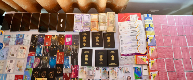 विशेष सूचनाका आधारमा प्रहरीले गरेको अप्रेसनमा ठूलो परिमाणमा तास, हवाई टिकट, राहदानी, नेपाली तथा भारतीय नगद र विभिन्न बैंकका एटीएम कार्ड बरामद गरिएको छ। प्रहरीले पक्राउ परेका मुख्य सदस्यमा सुरेश महाजन, दिनेश वर्मा, विक्रम सिंह, प्रमोद मौर्य तथा डिलर कर्मचारीहरू चिजा खड्का र भवानी पाण्डे छन्। तर, गिरोहका अन्य सदस्यहरू जनार्दन उप्रेती (विनोद), गौरव खत्री, निरज कुमार (मोनु), हिरा शेखर मल्ली पुरी, कमल खरबन्दा र मुकेश फरार छन्।